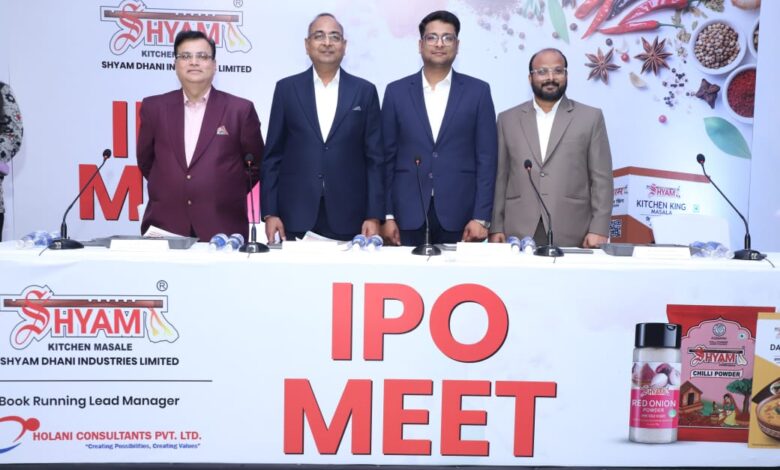 मुंबई,( NHI.in): – श्याम धनी इंडस्ट्रीज़ लिमिटेड (कंपनी ‘श्याम’) मुख्य रूप से अपने ब्रांड ‘SHYAM’ के तहत विभिन्न प्रकार के मसालों के निर्माण और प्रसंस्करण के कार्य में संलग्न है। कंपनी अपना इनिशिअल पब्लिक ऑफरिंग (आईपीओ ) सोमवार, 22 दिसंबर 2025 को खोलने का प्रस्ताव रखती है और ऊपरी मूल्य बैंड पर ₹38.49 करोड़ जुटाने का लक्ष्य रखती है। शेयर NSE इमर्ज प्लेटफ़ॉर्म पर सूचीबद्ध किए जाएंगे।